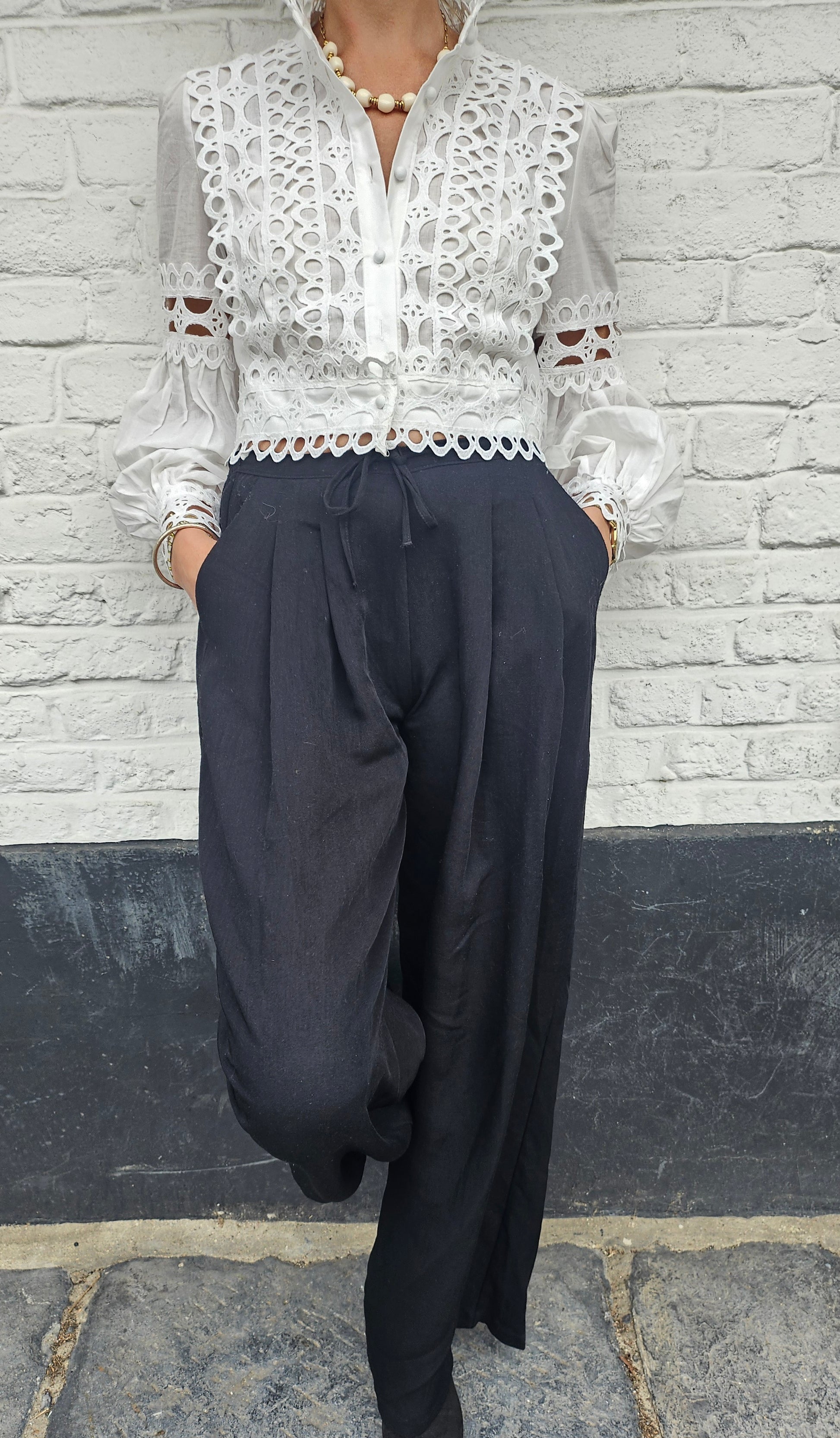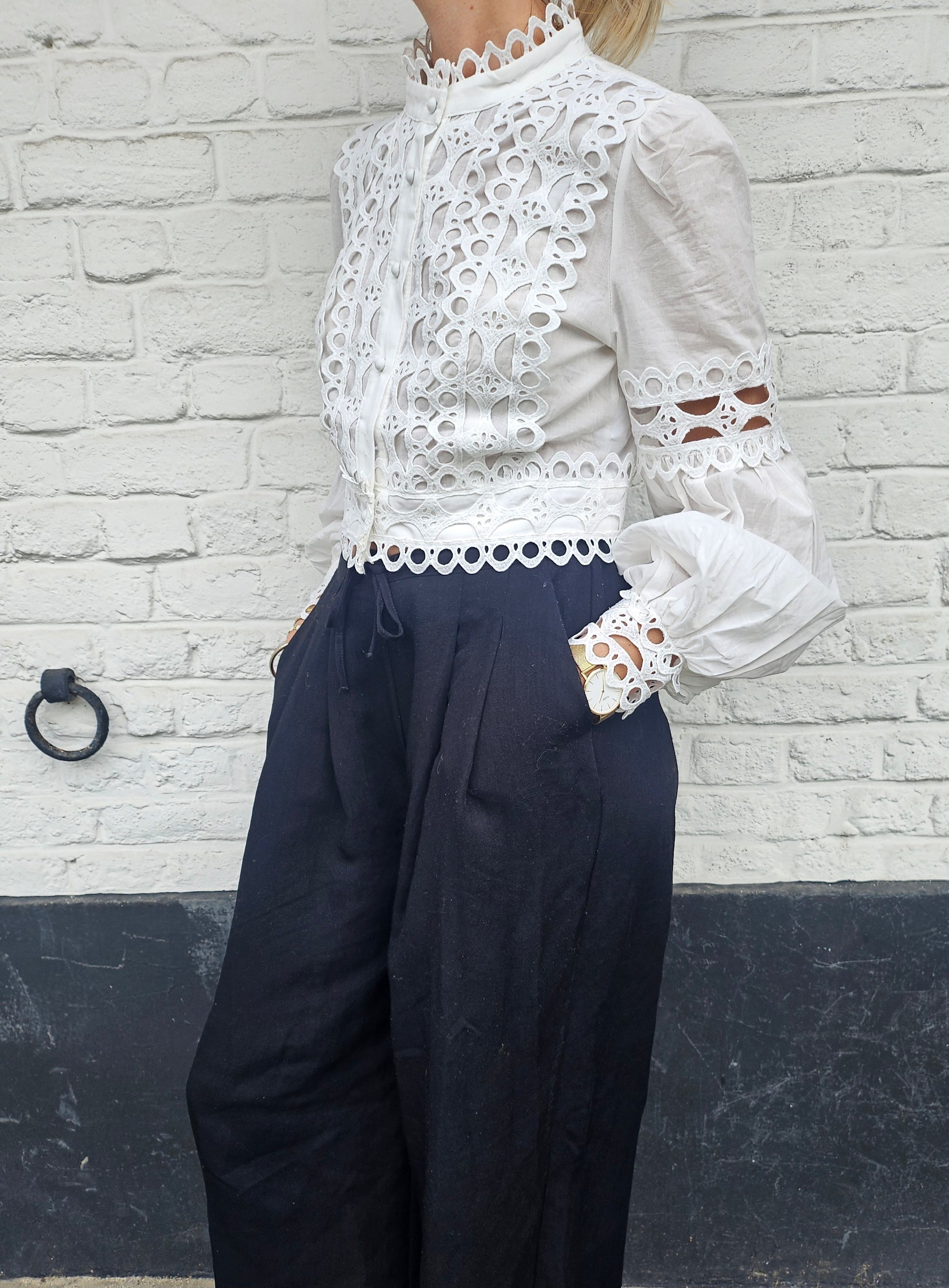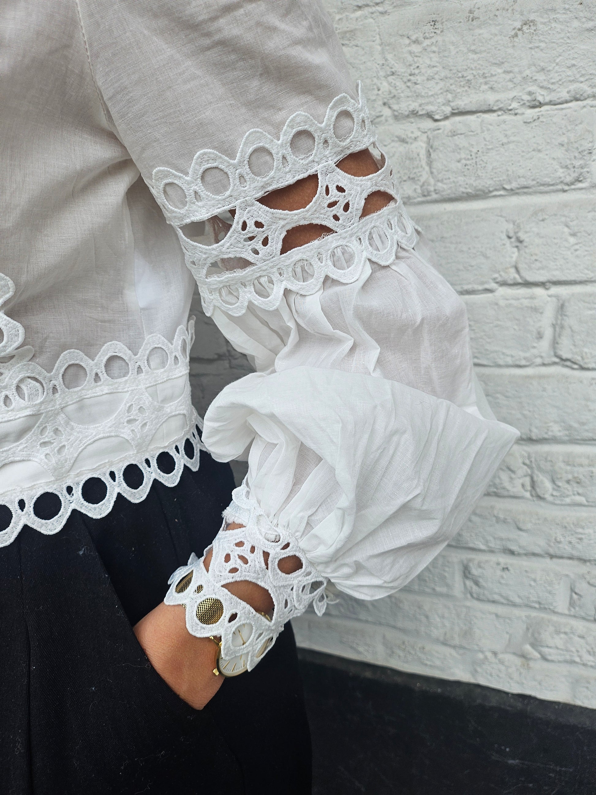 Chemise crop dentelle blanche