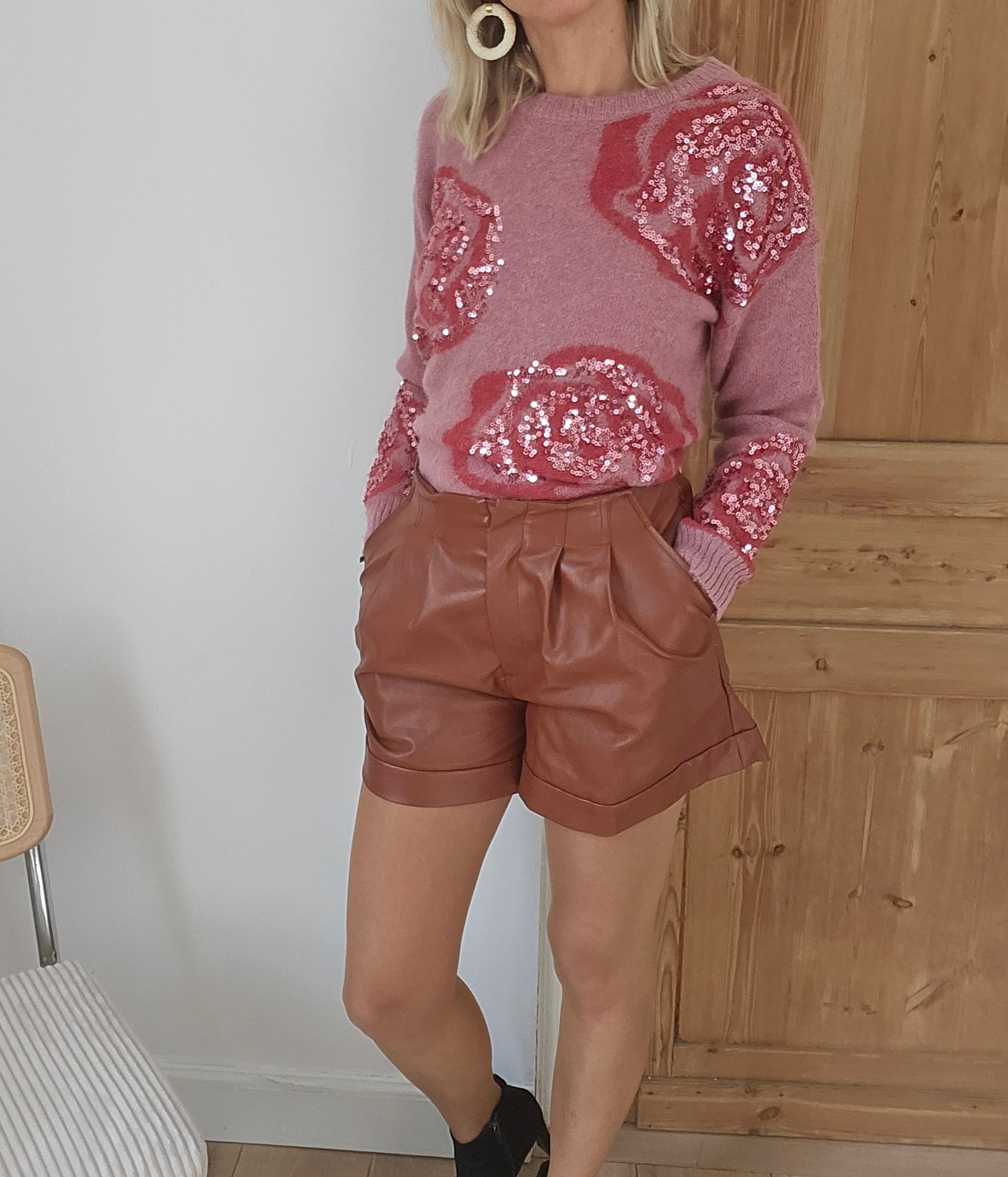 Je mesure 1m76 et fais habituellement un 36-38 en haut. Je porte ici la taille S/M. En cas de rupture de stock, retrouvez ce modèle dans notre collection BK TEEN (uniquement en taille S/M)